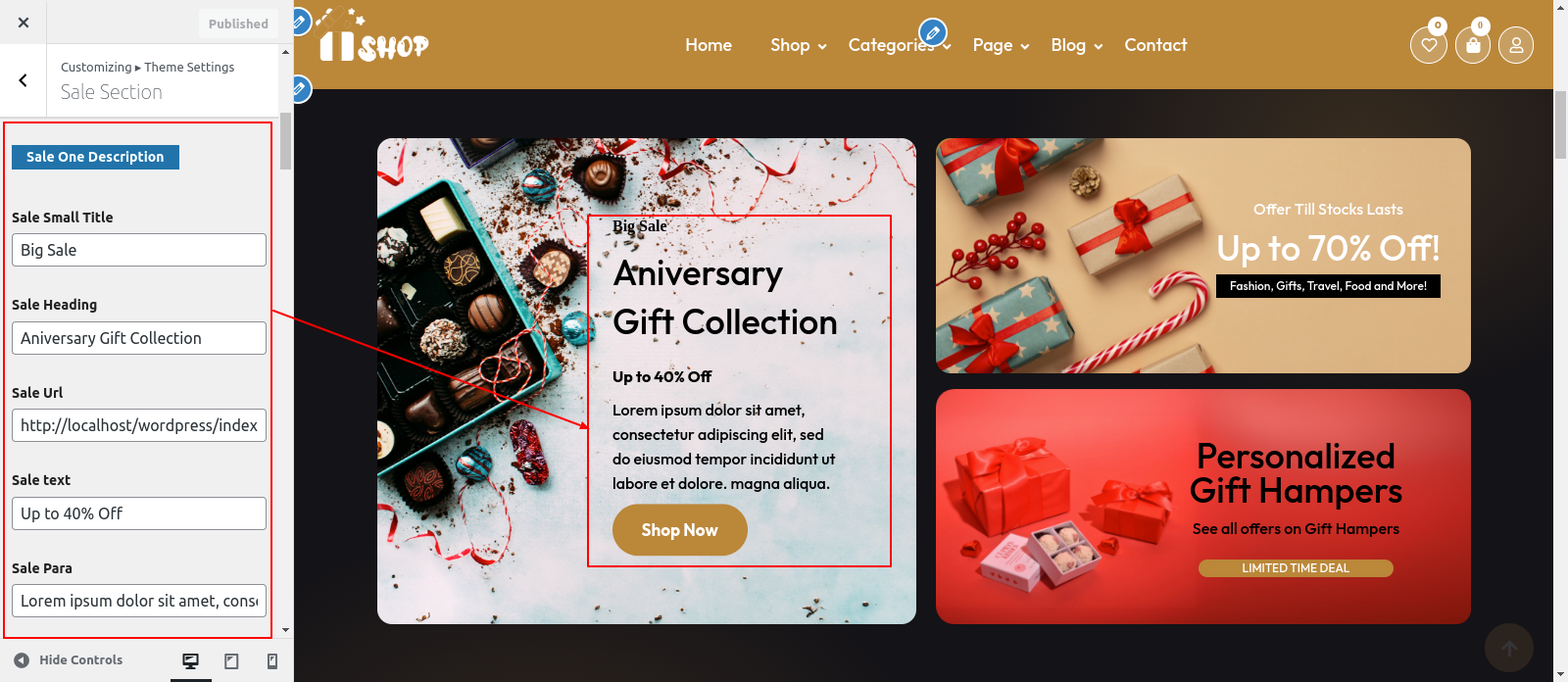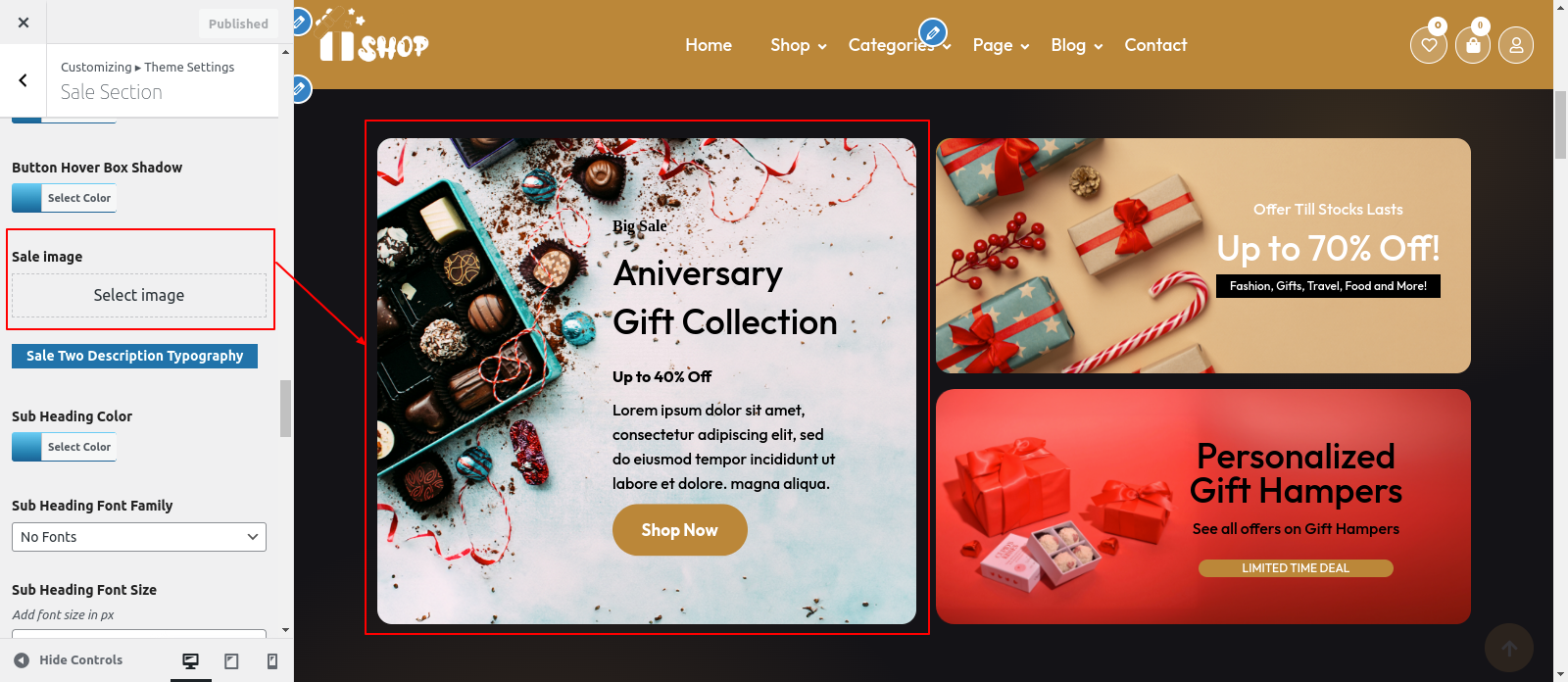 Go to Appearance >> Customize >> Theme Settings >> Sale Section